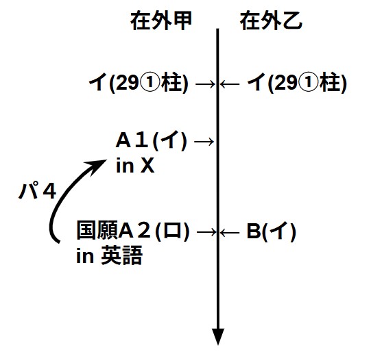 甲・乙がイを発明した時期は問題文では不明ですが、本問では発明した時期は解答に影響しないので、図示する時は便宜上そろえておきます